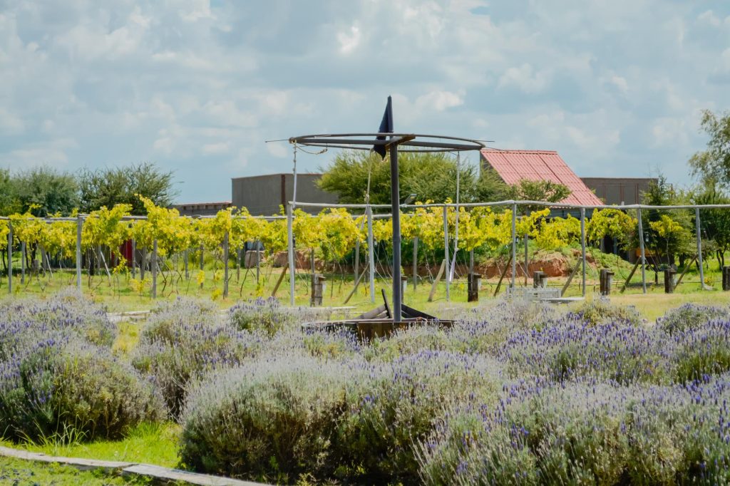 Ubicado en una zona de altitud elevada en Dolores Hidalgo, el viñedo disfruta de suelos calcáreos y pedregosos que proporcionan un excelente drenaje y un equilibrio nutricional perfecto para las vides. La topografía montañosa y la exposición solar favorecen una adecuada cantidad de luz para el desarrollo de las uvas, mientras que los suelos bien drenados permiten a las vides crear raíces profundas, lo que contribuye a una mejor calidad en los vinos.